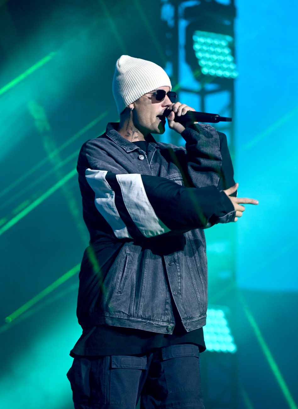 Justin Bieber en una actuación en Londres, 2021